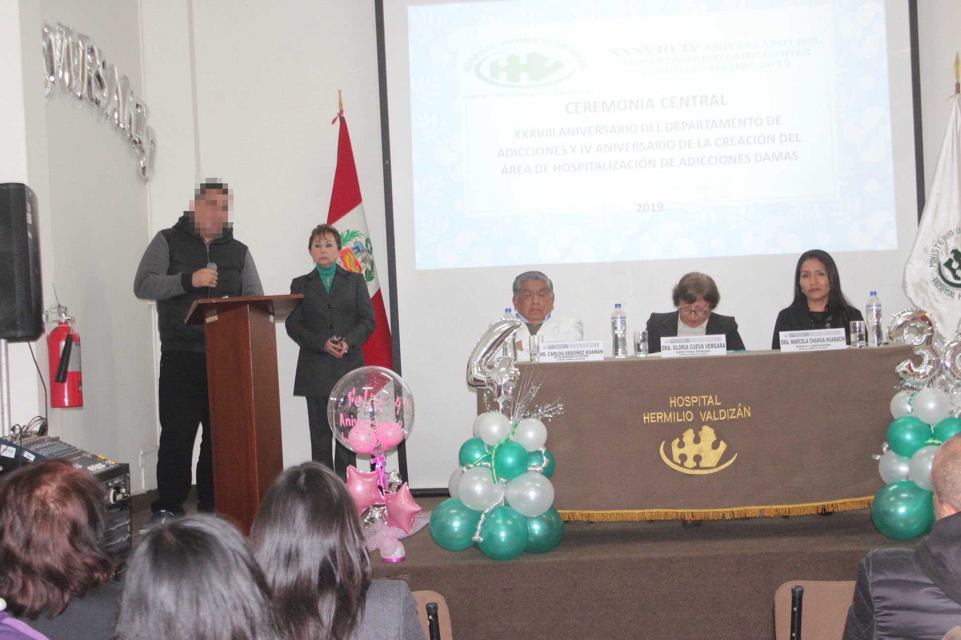 El Jefe del Departamento, agradeció la presencia de la Directora General, Dra. Gloria Cueva Vergara, a la ceremonia central por los 38 años del Departamento de Adicciones y los 4 años del Área de Hospitaliz